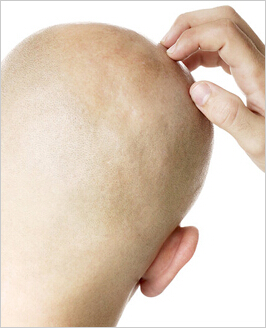 4、斑秃不及时治疗的话,在患病的初期,可能只有几片斑秃,逐渐的头发就会脱光,称全秃。