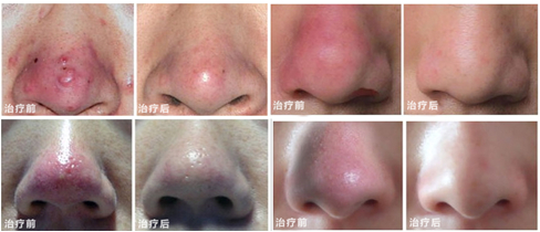2、出现持久不退的红斑以后患者的病患处开始长出一些脓包,有的人会误把他们当做是青春痘,脓包逐渐变成结节,皮肤毛囊口明显增大,女性患者病情会在行经前有所加重,出现久治不愈。数的男性患者结缔组织和皮脂腺会出现增殖,多出现在鼻尖部,到了一定的阶段患者鼻尖部增肥增大,患处皮肤表面凹凸不平毛细血管明显的外露,称为鼻赘。